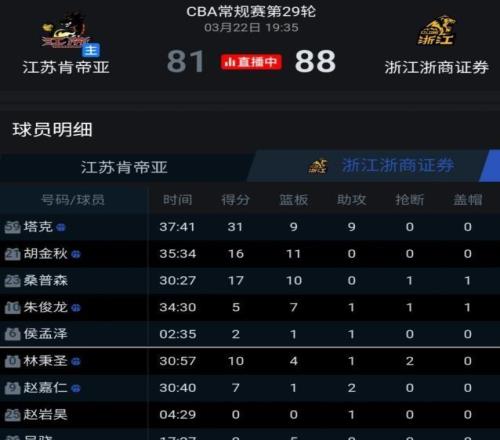 央视网:《CBA-塔克31+9+9胡金秋16+11 浙江浙商证券力克江苏》2026年3月22日24直播网:《潜力赛-马国栋6分6板 王欣瑞11分2板2助 江苏击败广厦》2026年3月22日抖音短视频:《@浙商证券男篮浙——【加时获胜】三连客第一战,加时赛以88-81战胜江苏肯帝亚。随着球队进入疲惫期,希望有更多年轻球员能够站出来分担压力。》2026年3月22日抖音短视频:《@小杨说球——第15集:王博:“不用那么大声”哈哈哈!浙江广厦主教练王博接受赛后采访》2026年3月23日
